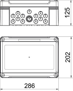 - 8 elastische Kabel- und Leitungseinführungen Ø 20mm für Kabeldurchmesser 0-17 mm