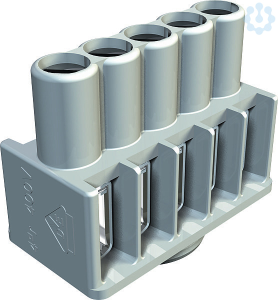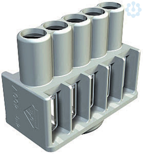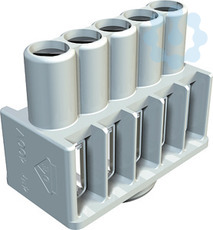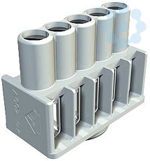 Klemmkörper und Schrauben aus Stahl, galvanisch verzinkt und transparent passiviert, Nennquerschnitt 1 ÷ 4 mm², Nennspannung 400 V, 5-polig, mit Buchsenklemmen max. anschließbare Querschnitte je Klemmstelle max. 4x2,5mm², 5x1,5mm² oder 6x1mm².