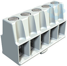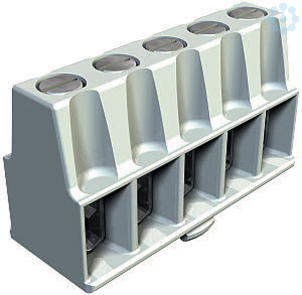 Klemmkörper und Schrauben aus Stahl, galvanisch verzinkt und transparent passiviert, Nennquerschnitt 1,5 ÷ 6 mm², Nennspannung 400 V, 5-polig, mit Buchsenklemmen max. anschließbare Querschnitte je Klemmstelle: 3x6mm², 4x4mm² oder 6x2,5mm².