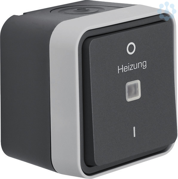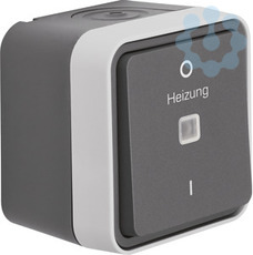 Kontroll-Ausschalter 2polig, Aufdruck 'eizung, 0 und 1 AP W.1 grau LT.Kontroll-Ausschalter 2-polig mit Aufdruck - Heizung Notschalter - 0 - I - AP mit Linse, IP55. Für Kontrollschaltung, mit rotem LED-Aggregat 230 V für Schalter/Taster, mit N-Klemme, mit Steckklemmen, mit mechanischer Kodierung der Wippenaufnahme, die nur ein lagerichtiges Aufstecken der Wippe auf den Einsatz ermöglicht, mit einer Einführung für 2 Leitungen und einer Einführung für Leitung oder Rohr, vollflächige Dichtung unter dem Gehäuseboden zur Abdichtung der Gehäuserückseite, gut zugängliche, trichterförmige Montagelöcher in den Gehäusen, eine Wago 2-Leiter Verbindungsklemme für Verdrahtung beiliegend, zwei Einrastplätze für Wago 2-Leiter Verbindungsklemmen im Gehäuseboden, viel Platz zur Verdrahtung unter den Sockeln der Einsätze (Hohlboden), einfache Montage des Einsatzes im Gehäuse durch Einrasten, sichere Fixierung des Rahmens am Gehäuse über Bajonett-Schnellverschluss. Nicht geeignet für Heizungsanlagen 50 kW. Gehäuseschrauben aus Edelstahl Rostfrei. Aufputz-Installation. Material: Kunststoff, Thermoplast, schlagfest.