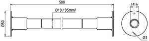 Kupfer-Kabel-Erdungsbrücke H07V-K beidseitig mit Anschlussplatte M16 D 50mm L 500mm