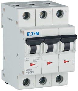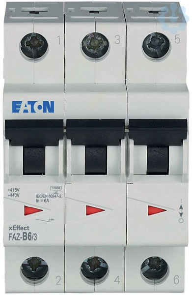 Leitungsschutzschalter, FAZ, 3-polig, Auslösecharakteristik: B, Bemessungsstrom In: 6 A, Schaltgeräte für Industrieanwendungen und gehobener Zweckbau