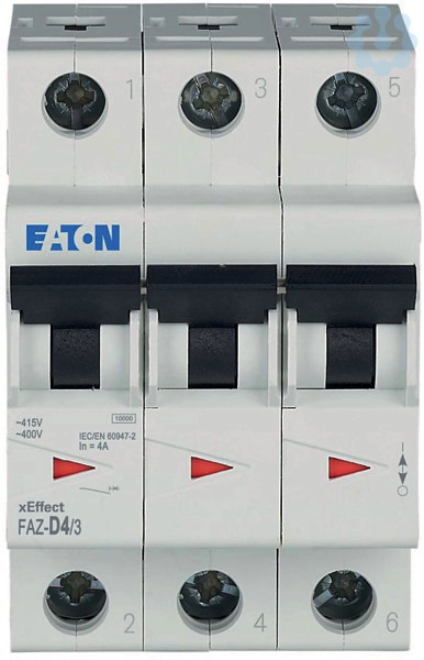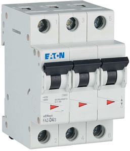 Leitungsschutzschalter, FAZ, 3-polig, Auslösecharakteristik: D, Bemessungsstrom In: 4 A, Schaltgeräte für Industrieanwendungen und gehobener Zweckbau