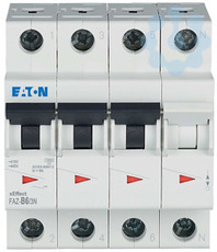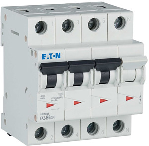 Leitungsschutzschalter, FAZ, 3-polig+N, Auslösecharakteristik: B, Bemessungsstrom In: 6 A, Schaltgeräte für Industrieanwendungen und gehobener Zweckbau