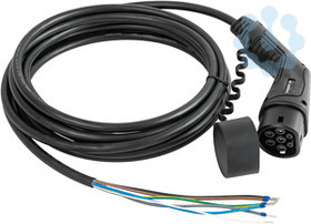 Ladekabel – AC-Ladekabel mit Kupplung Typ 2 gemäß IEC 62196-2 und offenem Leitungsende, mit Schutzkappe, Leitungsaufbau 5 x 2,5mm² + 1 x 0,5mm², IP54 (mit Schutzkappe), Ladeleistung bis maximal 11 kW (3-phasig), Ladestrom bis maximal 16 A, zur Installation an einer Spelsberg Wallbox