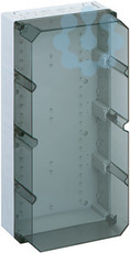 Leergehäuse, mit Schutzart IP65, Polystyrol, Ui=690V AC, Ui=1000V DC, innenliegende Befestigungsstellen, für Standardinstallationen im Innenbereich, Kasten: Polystyrol, Deckel: Polycarbonat, transparent, Ausschlagmembranen, M20/M25/M32/M40, (76 seitlich)