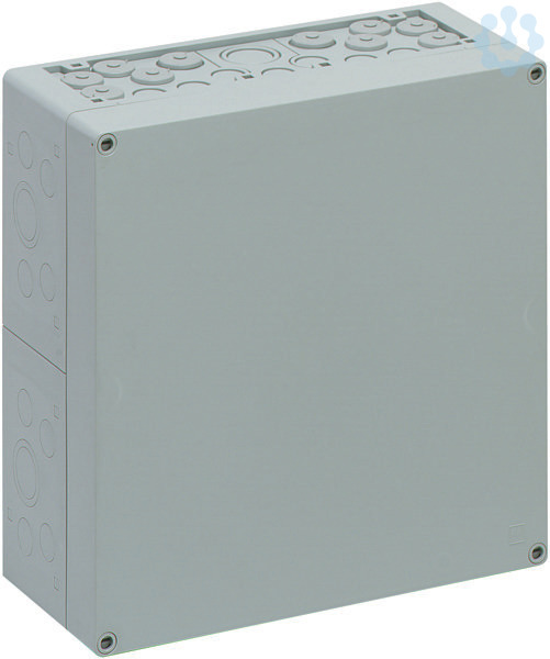 Leergehäuse, mit Schutzart IP65, Polycarbonat, glasfaserverstärkt, Ui=690V AC, Ui=1000V DC, innenliegende Befestigungsstellen, für Installationen im industriellen Umfeld und geschütztem Außenbereich, Kasten: Polycarbonat, glasfaserverstärkt, Deckel: Polycarbonat, grau, Ausschlagmembranen, M20/M25/M32/M40, (56 seitlich)