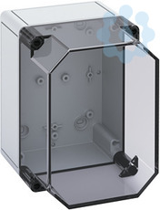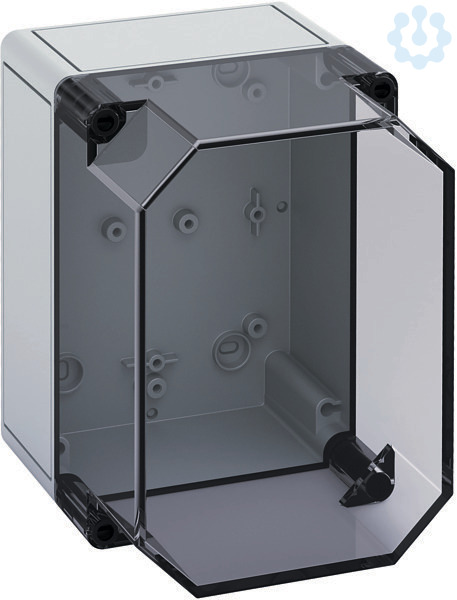 Leergehäuse, mit Schutzart IP66, Polycarbonat, glasfaserverstärkt, zertifiziert durch UL (UL 50 & CSA 22.2 No. 94.1-07, UL 50E & CSA C22.2 No. 94.2-07), DLG (Ammoniakbeständigkeit), DNV (Klasse: Schiffe & Offshore-Anlagen), Ui=690V AC, Ui=1000V DC, innenliegende Befestigungsstellen, für Installationen im industriellen Umfeld und geschütztem Außenbereich, Kasten: Polycarbonat, glasfaserverstärkt, grau, Deckel: Polycarbonat, transparent, glatte Seitenwände