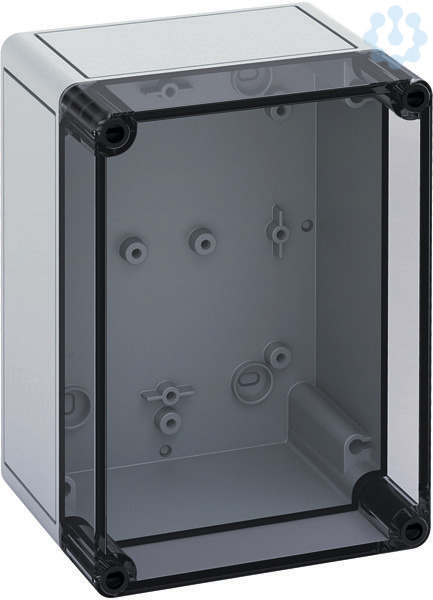 Leergehäuse, mit Schutzart IP66, Polycarbonat, glasfaserverstärkt, zertifiziert durch UL (UL 50 & CSA 22.2 No. 94.1-07, UL 50E & CSA C22.2 No. 94.2-07), DLG (Ammoniakbeständigkeit), DNV (Klasse: Schiffe & Offshore-Anlagen), Ui=690V AC, Ui=1000V DC, innenliegende Befestigungsstellen, für Installationen im industriellen Umfeld und geschütztem Außenbereich, Kasten: Polycarbonat, glasfaserverstärkt, grau, Deckel: Polycarbonat, transparent, glatte Seitenwände