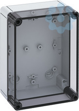 Leergehäuse, mit Schutzart IP66, Polycarbonat, glasfaserverstärkt, zertifiziert durch UL (UL 50 & CSA 22.2 No. 94.1-07, UL 50E & CSA C22.2 No. 94.2-07), DLG (Ammoniakbeständigkeit), DNV (Klasse: Schiffe & Offshore-Anlagen), Ui=690V AC, Ui=1000V DC, innenliegende Befestigungsstellen, für Installationen im industriellen Umfeld und geschütztem Außenbereich, Kasten: Polycarbonat, glasfaserverstärkt, grau, Deckel: Polycarbonat, transparent, glatte Seitenwände