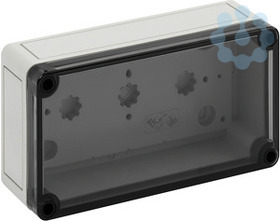 Leergehäuse, mit Schutzart IP66, Polycarbonat, glasfaserverstärkt, zertifiziert durch UL (UL 508 & CSA C22.2 No. 14-13, UL 50 & CSA 22.2 No. 94.1-7 & UL 50E & CSA C22.2 No. 94.2-7), DLG (Ammoniakbeständigkeit), DNV (Klasse: Schiffe & Offshore-Anlagen), Ui=690V AC, Ui=1000V DC, innenliegende Befestigungsstellen, für Installationen im industriellen Umfeld und geschütztem Außenbereich, Kasten: Polycarbonat, glasfaserverstärkt, grau, Deckel: Polycarbonat, transparent, glatte Seitenwände