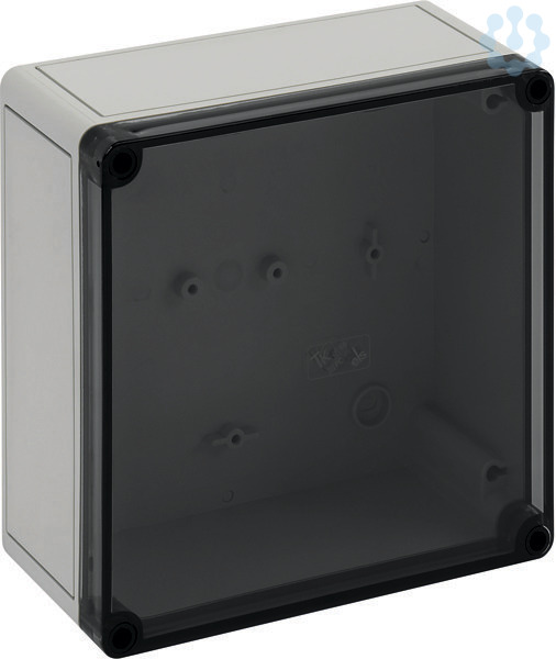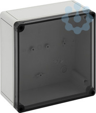 Leergehäuse, mit Schutzart IP66, Polycarbonat, glasfaserverstärkt, zertifiziert durch UL (UL 50 & CSA 22.2 No. 94.1-07, UL 50E & CSA C22.2 No. 94.2-07), DLG (Ammoniakbeständigkeit), DNV (Klasse: Schiffe & Offshore-Anlagen), Ui=690V AC, Ui=1000V DC, innenliegende Befestigungsstellen, für Installationen im industriellen Umfeld und geschütztem Außenbereich, Kasten: Polycarbonat, glasfaserverstärkt, grau, Deckel: Polycarbonat, transparent, glatte Seitenwände
