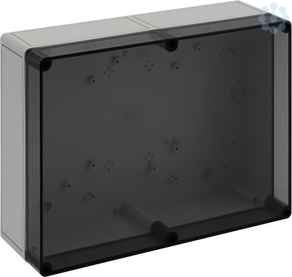 Leergehäuse, mit Schutzart IP66, Polycarbonat, glasfaserverstärkt, zertifiziert durch UL (UL 50 & CSA 22.2 No. 94.1-07, UL 50E & CSA C22.2 No. 94.2-07), DLG (Ammoniakbeständigkeit), DNV (Klasse: Schiffe & Offshore-Anlagen), Ui=690V AC, Ui=1000V DC, innenliegende Befestigungsstellen, für Installationen im industriellen Umfeld und geschütztem Außenbereich, Kasten: Polycarbonat, glasfaserverstärkt, grau, Deckel: Polycarbonat, transparent, glatte Seitenwände