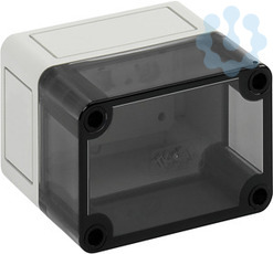 Leergehäuse, mit Schutzart IP66, Polycarbonat, glasfaserverstärkt, zertifiziert durch UL (UL 508 & CSA C22.2 No. 14-13, UL 50 & CSA 22.2 No. 94.1-7 & UL 50E & CSA C22.2 No. 94.2-7), DLG (Ammoniakbeständigkeit), DNV (Klasse: Schiffe & Offshore-Anlagen), Ui=690V AC, Ui=1000V DC, innenliegende Befestigungsstellen, für Installationen im industriellen Umfeld und geschütztem Außenbereich, Kasten: Polycarbonat, glasfaserverstärkt, grau, Deckel: Polycarbonat, transparent, glatte Seitenwände
