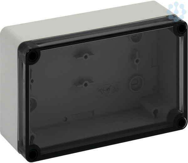 Leergehäuse, mit Schutzart IP66, Polycarbonat, glasfaserverstärkt, zertifiziert durch UL (UL 50 & CSA 22.2 No. 94.1-07, UL 50E & CSA C22.2 No. 94.2-07), DLG (Ammoniakbeständigkeit), DNV (Klasse: Schiffe & Offshore-Anlagen), Ui=690V AC, Ui=1000V DC, innenliegende Befestigungsstellen, für Installationen im industriellen Umfeld und geschütztem Außenbereich, Kasten: Polycarbonat, glasfaserverstärkt, grau, Deckel: Polycarbonat, transparent, glatte Seitenwände