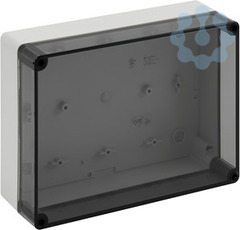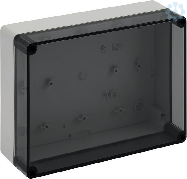 Leergehäuse, mit Schutzart IP66, Polycarbonat, glasfaserverstärkt, zertifiziert durch UL (UL 50 & CSA 22.2 No. 94.1-07, UL 50E & CSA C22.2 No. 94.2-07), DLG (Ammoniakbeständigkeit), DNV (Klasse: Schiffe & Offshore-Anlagen), Ui=690V AC, Ui=1000V DC, innenliegende Befestigungsstellen, für Installationen im industriellen Umfeld und geschütztem Außenbereich, Kasten: Polycarbonat, glasfaserverstärkt, grau, Deckel: Polycarbonat, transparent, glatte Seitenwände