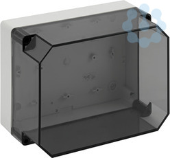 Leergehäuse, mit Schutzart IP66, Polycarbonat, glasfaserverstärkt, zertifiziert durch UL (UL 50 & CSA 22.2 No. 94.1-07, UL 50E & CSA C22.2 No. 94.2-07), DLG (Ammoniakbeständigkeit), DNV (Klasse: Schiffe & Offshore-Anlagen), Ui=690V AC, Ui=1000V DC, innenliegende Befestigungsstellen, für Installationen im industriellen Umfeld und geschütztem Außenbereich, Kasten: Polycarbonat, glasfaserverstärkt, grau, Deckel: Polycarbonat, transparent, glatte Seitenwände