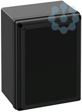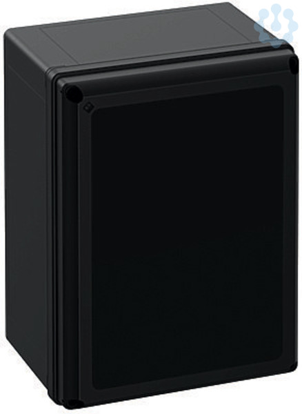 Leergehäuse, geeignet für die Installation in rauen Umgebungen und im ungeschützten Außenbereich, Kasten: glasfaserverstärktes Polycarbonat, schwarz, ähnlich RAL 9005, Deckel: Polycarbonat, mit schwarzem Deckel