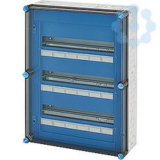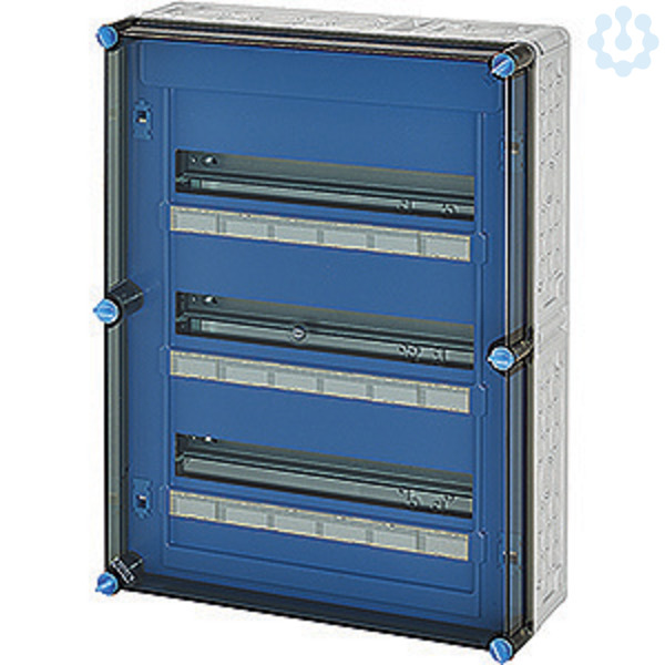 Gehäuse für den Bau von Energie-Schaltgerätekombinationen bis 630 A oder als Einzelgehäuse. Aus hochwertigem Polycarbonat schutzisoliert. Wanddurchführungen mit großen Öffnungen für die elektrische Verbindung der Gehäuse untereinander. Kabeleinführung an allen Gehäusewänden über metrische Vorprägungen oder Anbauflansche. Gehäuse zur Wandbefestigung auch über Außenlaschen oder mit Montageschienen. Automatengehäuse mit 54 Teilungseinheiten zum Einbau von Reiheneinbaugeräten nach DIN 43880. Ohne PE- und N-Klemmen. Mit Abdeckstreifen zum Verschließen von nicht benutzten Geräteausschnitten und Beschriftungsstreifen für die Stromkreiskennzeichnung. Transparenter Deckel, Deckelverschlüsse für Handbetätigung.