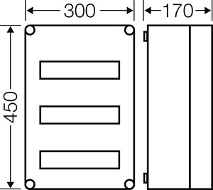 Gehäuse für den Bau von Energie-Schaltgerätekombinationen bis 630 A oder als Einzelgehäuse. Aus hochwertigem Polycarbonat schutzisoliert. Wanddurchführungen mit großen Öffnungen für die elektrische Verbindung der Gehäuse untereinander. Kabeleinführung an allen Gehäusewänden über metrische Vorprägungen oder Anbauflansche. Gehäuse zur Wandbefestigung auch über Außenlaschen oder mit Montageschienen. Automatengehäuse mit 36 Teilungseinheiten zum Einbau von Reiheneinbaugeräten nach DIN 43880. Ohne PE- und N-Klemmen. Mit Abdeckstreifen zum Verschließen von nicht benutzten Geräteausschnitten und Beschriftungsstreifen für die Stromkreiskennzeichnung. Transparenter Deckel, Deckelverschlüsse für Handbetätigung.