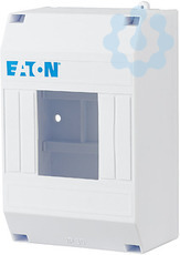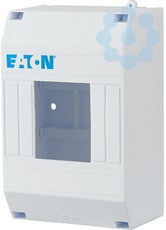 Micro Kleinverteiler aus Kunststoff, zum Einbau von Schalt- und Schutzgeräten nach Maßnorm DIN 43 880 mit 70 mm Einbautiefe bis 63 A, 400 V /50 Hz, Schutzart IP30 nach IEC/EN 62208, für den Bau von Installationsverteilern nach IEC/EN 61439-3 VDE 0660-600-3 zugelassen, zur Aufputz Montage, Oberteil mit 46 mm Geräteöffnung, serienmaessig plombierbar, Unterteil und Deckel weiß mit schraubloser Klicktechnik, Vorprägung für metrische Leitungseinführungen oben und unten, Schutzklasse II, 4 Teilungseinheiten.