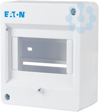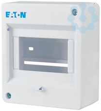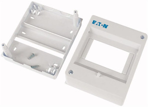 Mini Kleinverteiler aus Kunststoff, zum Einbau von Schalt- und Schutzgeräten nach Maßnorm DIN 43 880 mit 70 mm Einbautiefe bis 63 A, 400 V /50 Hz, Schutzart IP20 nach IEC/EN 62208, für den Bau von Installationsverteilern nach IEC/EN 61439-3 VDE 0660-600-3 zugelassen, zur Aufputz Montage, Oberteil mit 46 mm Geräteöffnung, serienmaessig plombierbar, Unterteil und Deckel weiß mit Schraubverschluß, Vorprägung für metrische Leitungseinführungen oben, unten und hinten, Schutzklasse II, 5 Teilungseinheiten.