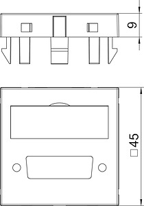 Multimediaträger für einen DVI Steckverbinder, Kabelauslass gerade, mit Beschriftungsfeld, ohne Steckverbinder. Trägerplatte mit Rastbefestigung, geeignet für den waagerechten und senkrechten Einbau in die Systemumgebung.