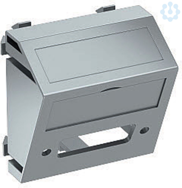 Multimediaträger für einen DVI Steckverbinder, Kabelauslass schräg, mit Beschriftungsfeld, ohne Steckverbinder. Trägerplatte mit Rastbefestigung, geeignet für den waagerechten und senkrechten Einbau in die Systemumgebung.