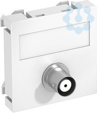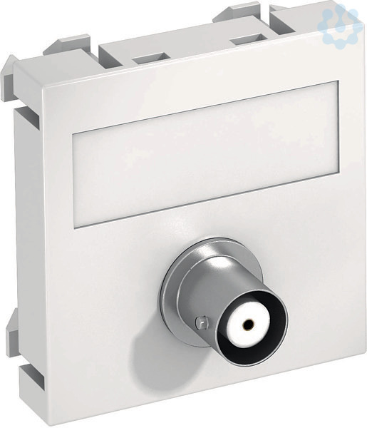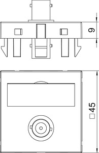 Multimediaträger mit einer BNC-Anschlussbuchse, Kabelauslass gerade, mit Beschriftungsfeld, BNC-Kupplung in Ausführung Buchse-Buchse. Trägerplatte mit Rastbefestigung, geeignet für den waagerechten und senkrechten Einbau in die Systemumgebung.