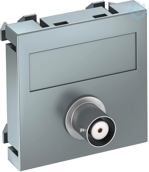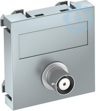 Multimediaträger mit einer BNC-Anschlussbuchse, Kabelauslass gerade, mit Beschriftungsfeld, BNC-Kupplung in Ausführung Buchse-Buchse. Trägerplatte mit Rastbefestigung, geeignet für den waagerechten und senkrechten Einbau in die Systemumgebung.
