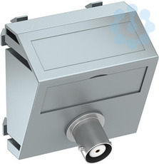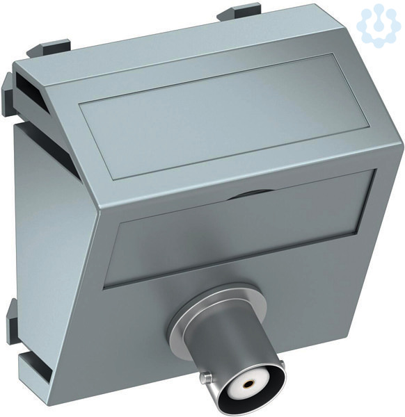 Multimediaträger mit einer BNC Anschlussbuchse, Kabelauslass schräg, mit Beschriftungsfeld, BNC Kupplung in Ausführung Buchse-Buchse. Trägerplatte mit Rastbefestigung, geeignet für den waagerechten und senkrechten Einbau in die Systemumgebung.