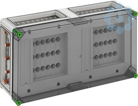 NEOZED(R)-Reiter-Sicherungsgehäuse, 12 x 3-polige D02-Reiter-Sicherungssockel, E 18-Gewinde, Bemessungsstrom 63 A, Schraubanschluss 1,5-25mm², auf Sammelschiene 5-polig, mit 5 Sammelschienenklemmen 4-35mm², N-Klemmen 1,5-16mm², PE-Klemmen 1,5-16mm², 4 x Gehäuseverbinder (GGV), auf Sammelschienensystem 250 A, mit transparentem Deckel