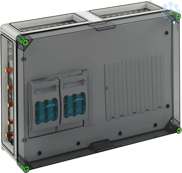 NH-Reiterlasttrennergehäuse, Schutzart IP65, Schlagfestigkeit IK08, Schutzklasse II, Bemessungsspannung 690V AC, halogenfrei