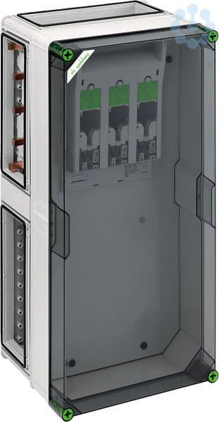 NH-Reiterlasttrennergehäuse, Schutzart IP65, Schlagfestigkeit IK08, Schutzklasse II, Bemessungsspannung 690V AC, halogenfrei