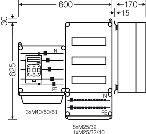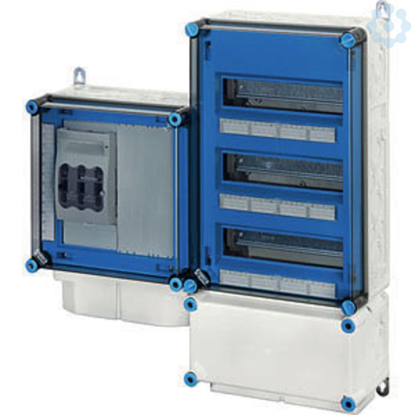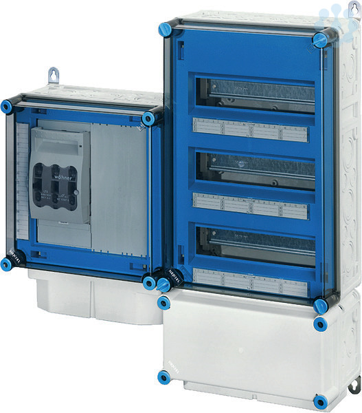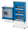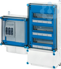 Wechselrichter-Sammler nach IEC 61439 für PV-Anlagen werden als Komplett-Set geliefert. Die Gehäuse aus hochwertigem Thermoplast sind schutzisoliert, Schutzart IP 54/IP 65. Wechselrichter-Sammler können um die Funktion Blitz- und Überspannungsschutz oder Fehlerstromschutz (RCD) erweitert werden. Sie sind für die geschützte Installation im Freien geeignet und UV-beständig. PV-Wechselrichter-Sammler bis 70 kVA mit Automatengehäuse. Max. 18 x 1~ Wechselrichter oder 6 x 3~ Wechselrichter. Wandbefestigung über Außenlaschen aus Edelstahl.