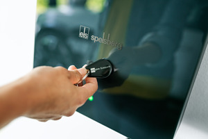 RFID-Chip-zur Autorisierung von Ladevorgängen an einer Spelsberg Wallbox, multifunktionale Anwendungen in einem Chip, handliches Design, kontaktloses Lesen und Schreiben mittels RFID-Technologie