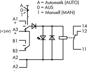 Relaisbaustein 1 W 24VDC Hand-0-Automatik-Umschalter