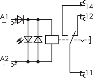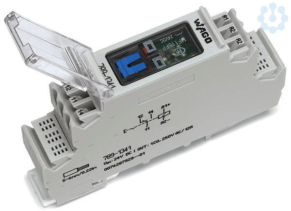 Relaismodul; Eingangsnennspannung DC 24 V; 1 Wechsler; Grenzdauerstrom 12 A; mit Handbedienung; Statusanzeige rot; 18 mm Baubreite; 2,50 mm²