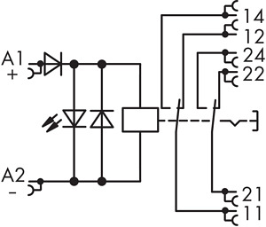 Relaismodul; Eingangsnennspannung DC 24 V; 2 Wechsler; Grenzdauerstrom 8 A; mit Handbedienung; Statusanzeige rot; 18 mm Baubreite; 2,50 mm²