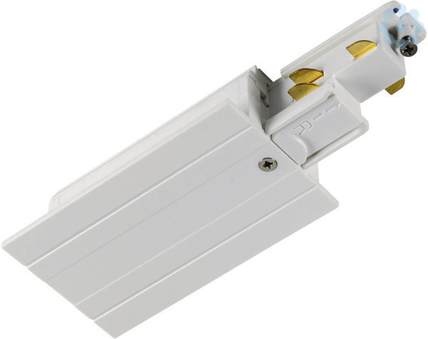 Endeinspeiser für das S-TRACK 3Phasen-Einbauschienen-System. Der weiße Einspeiser ist mit Erdleiter rechts erhältlich und DALI kompatibel. Detaillierte Informationen entnehmen Sie bitte der Planungshilfe.
