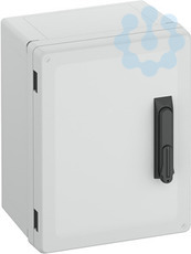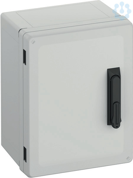 Schaltschrank, geeignet für die Installation in rauen Umgebungen und im ungeschützten Außenbereich, Kasten und Rahmen: glasfaserverstärktes Polycarbonat, grau, ähnlich RAL 7035, Tür: Polycarbonat.