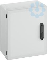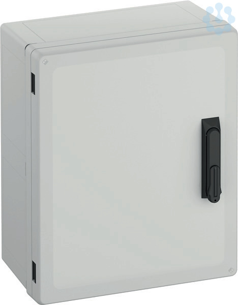 Schaltschrank, geeignet für die Installation in rauen Umgebungen und im ungeschützten Außenbereich, Kasten und Rahmen: glasfaserverstärktes Polycarbonat, grau, ähnlich RAL 7035, Tür: Polycarbonat.