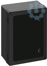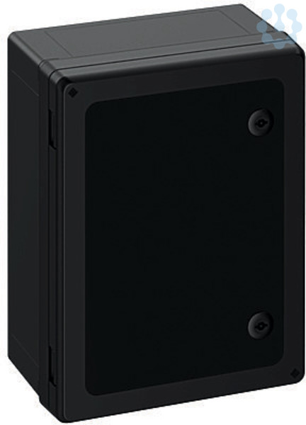 Schaltschrank, geeignet für die Installation in rauen Umgebungen und im ungeschützten Außenbereich, Kasten und Rahmen: glasfaserverstärktes Polycarbonat, schwarz, ähnlich RAL 9005, Tür: Polycarbonat.