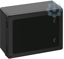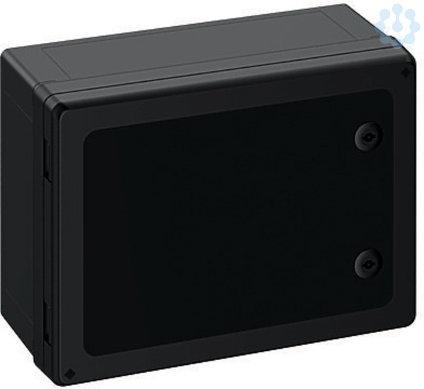 Schaltschrank, geeignet für die Installation in rauen Umgebungen und im ungeschützten Außenbereich, Kasten und Rahmen: glasfaserverstärktes Polycarbonat, schwarz, ähnlich RAL 9005, Tür: Polycarbonat.
