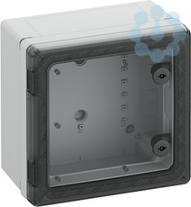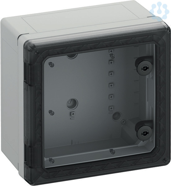 Schaltschrank, geeignet für die Installation in rauen Umgebungen und im ungeschützten Außenbereich, Kasten und Rahmen: glasfaserverstärktes Polycarbonat, grau, ähnlich RAL 7035, Tür: Polycarbonat.