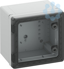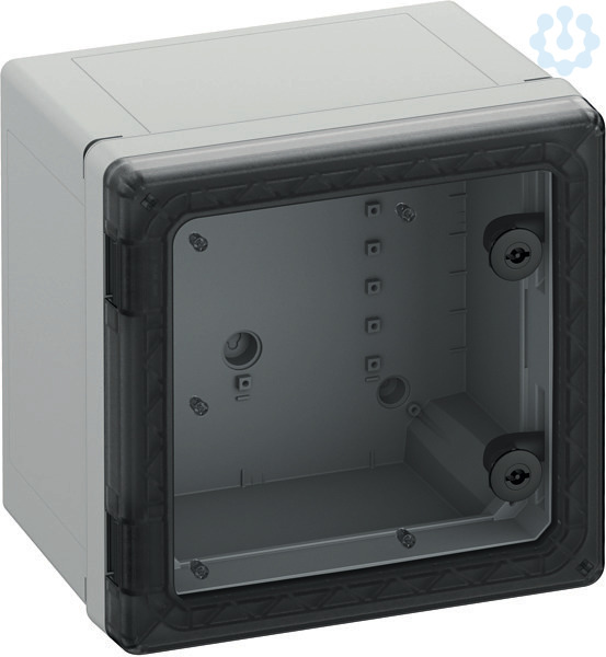Schaltschrank, geeignet für die Installation in rauen Umgebungen und im ungeschützten Außenbereich, Kasten und Rahmen: glasfaserverstärktes Polycarbonat, grau, ähnlich RAL 7035, Tür: Polycarbonat.