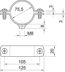 Schraub-Abst.schelle 2 1/2 Zoll mit M8-Gewinde