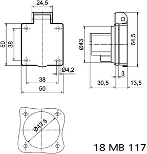 Bohrlochabstand vertikal: 38 mm, Bohrlochabstand horizontal: 38 mm,
