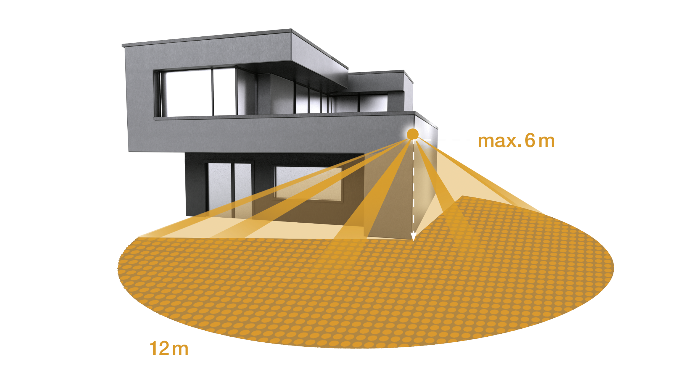 Taghelle Ausleuchtung bis in die letzte Ecke: der Sensor-Außenstrahler XLED PRO 240 S. Mit vollschwenkbarem LED-Flatpanel und opaler Scheibe. 2124 lm, 3000 K, 19,3 W. Mit 240°-Infrarot-Sensor für eine sichere Bewegungserfassung bis 12 m Reichweite.