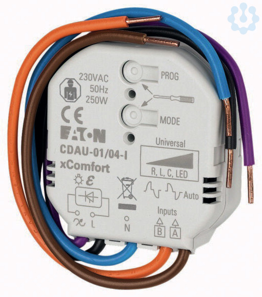 Intelligentes Dimm-Betätigungselement in kleiner Bauform mit 0–250 W/230 VAC und lokalen 230 VAC-Eingängen. Geeignet zum Dimmen verschiedenster Lasten einschließlich dimmbarer und nicht dimmbarer LEDs (Ein/Aus). Dimmt selbst kleinste LED-Lasten ab 0 W! Einfache Auswahl oder Definition eines Dimmprofils für eine optimale Dimmleistung. Energieeffizient. Kurzschluss-, Überlast- und Übertemperaturschutz mit automatischer Rücksetzfunktion. Kompakte Bauform für den Einbau hinter Schalter, Taster, Bewegungssensoren, Wandsteckdosen oder in Verteilerdosen.